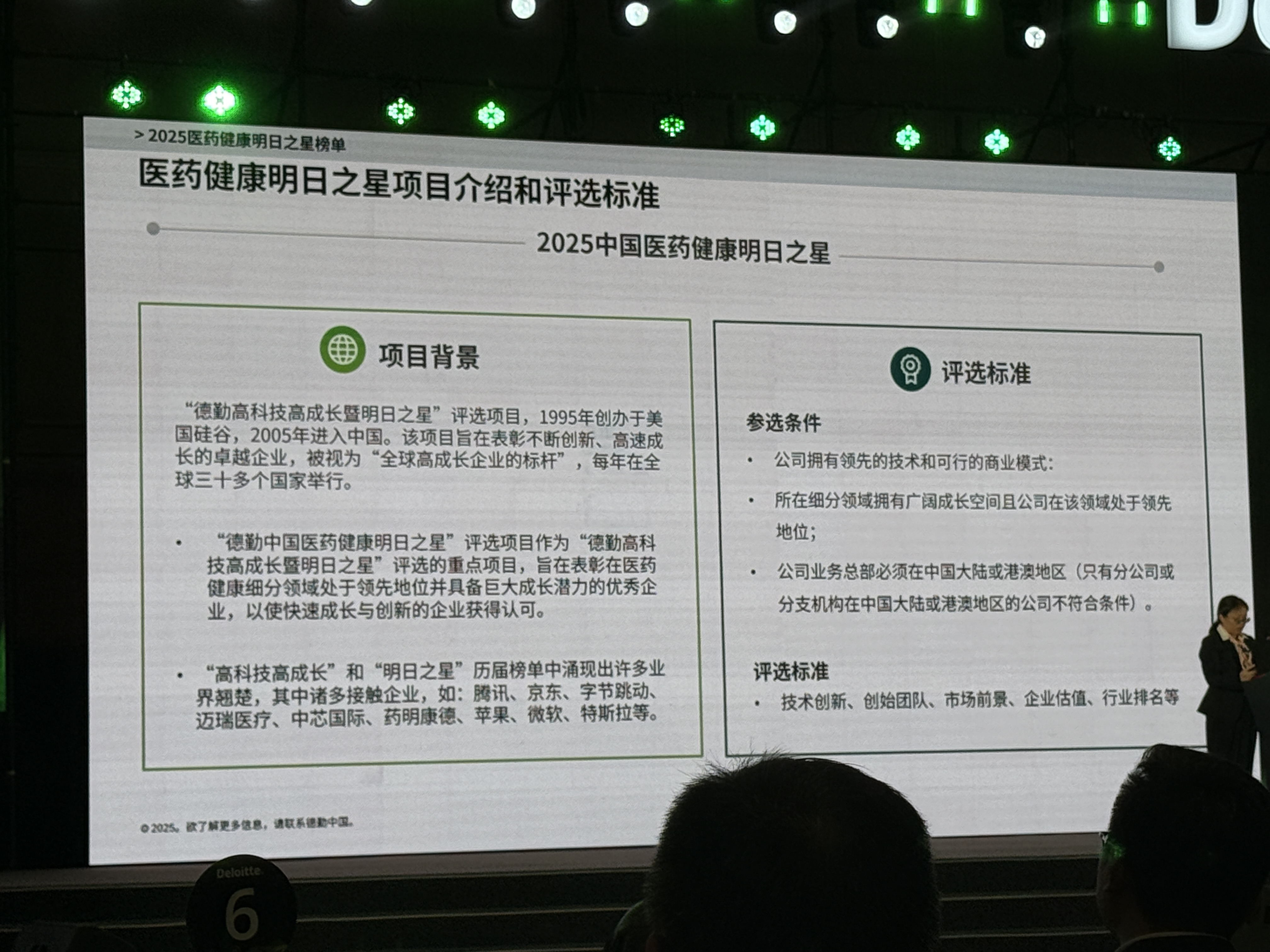 “德勤高科技高成长项目” 1995 年创办于美国硅谷,2005 年进入中国,每年在全球数十个国家和地区举办,被誉为 “全球高成长企业的标杆”,历届培育出腾讯、阿里巴巴、药明康德、迈瑞等众多业界翘楚。2025 年该项目特设 “医药健康明日之星” 奖项,聚焦医药健康领域中早期高潜力企业,其评选以创新能力、成长韧性与行业价值为核心标准,极具公信力与行业风向标意义。